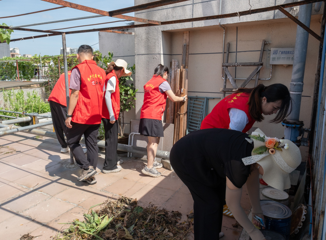 谢聪颖介绍,萧岗花园社区依托“大党委”和“社区合伙人”机制,有效整合辖区资源,包括广州市档案馆、处突大队等多个单位都有积极参与,重点针对辖内冷巷、天台、停车场等区域的积水、杂物和卫生死角进行全面清理,同时上门发动居民自觉清理家中和房前屋后的积水和垃圾,共同筑牢社区防控网络。