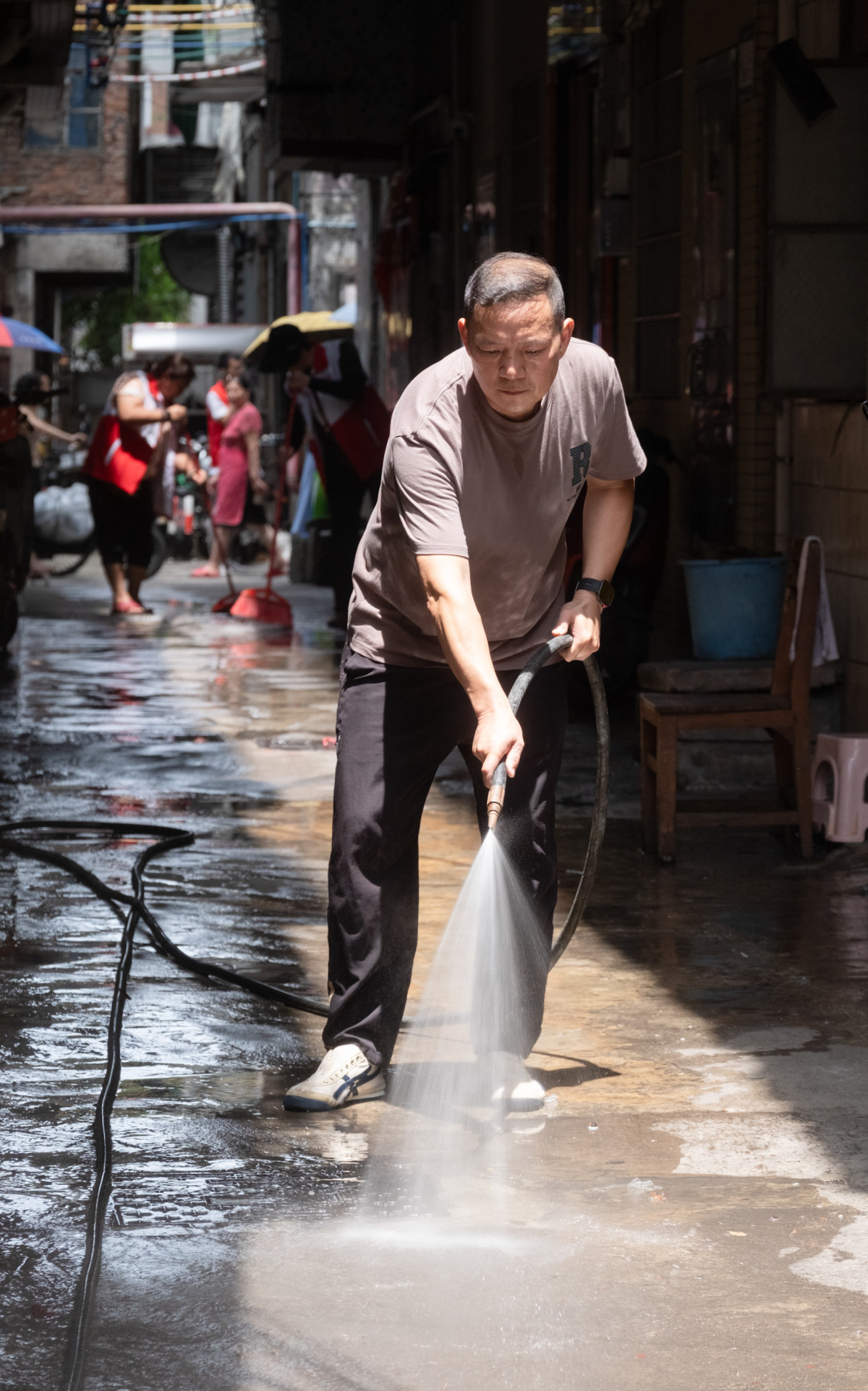 棠涌联社第四经济社的党员群众,则在忙着冲洗冷巷,清理巷道垃圾,减少蚊虫栖息空间。