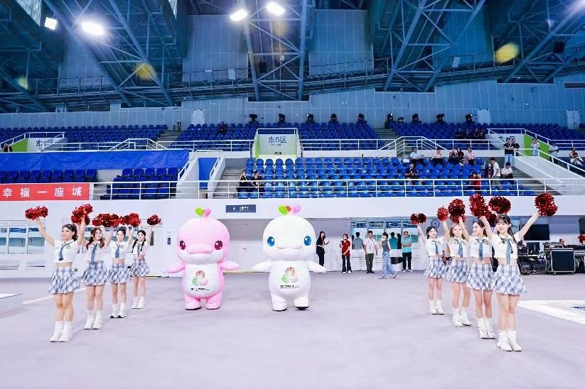比赛间歇期间,现场还有“神秘嘉宾”大驾光临——吉祥物“喜洋洋”和“乐融融”萌翻全场,在现场展开一场比舞PK,它们时而转圈,时而摇摆,认真“营业”,仿佛在用舞蹈诉说着对比赛的热情和对观众的喜爱。