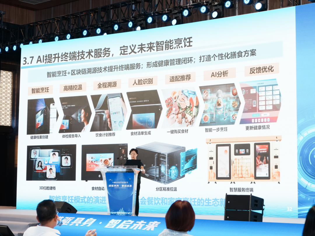更重要的是,该方案打通了健康饮食闭环。“上传体检报告就能定制专属食谱,扫脸还能分析健康情况,更新饮食需求。” 王宁透露:“未来还将打通美团、京东等实现买净菜一键送到家,该功能已在筹备中。”