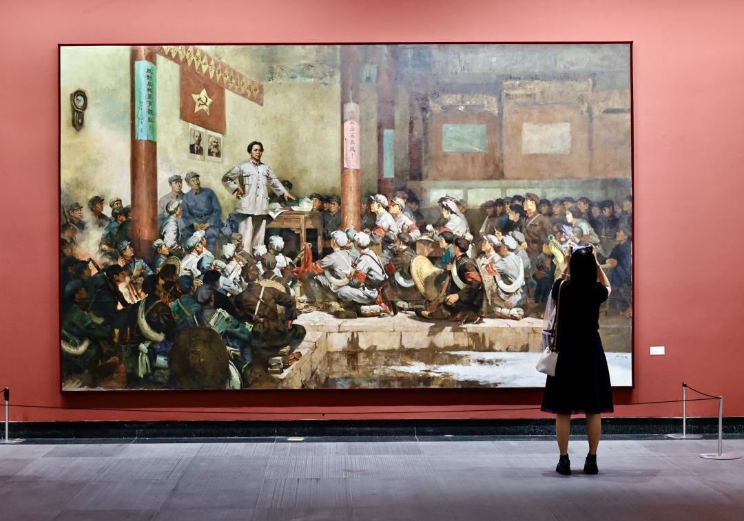 8月30日,“纪念中国人民抗日战争暨世界反法西斯战争胜利80周年”学术活动在广州美术学院美术馆开幕。本次活动备受瞩目的是,“回溯经典·荣光重现——红色足迹《古田会议》油画修复研究成果展”正式向公众开放,吸引许多人驻足观赏。该展览展期至10月8日。