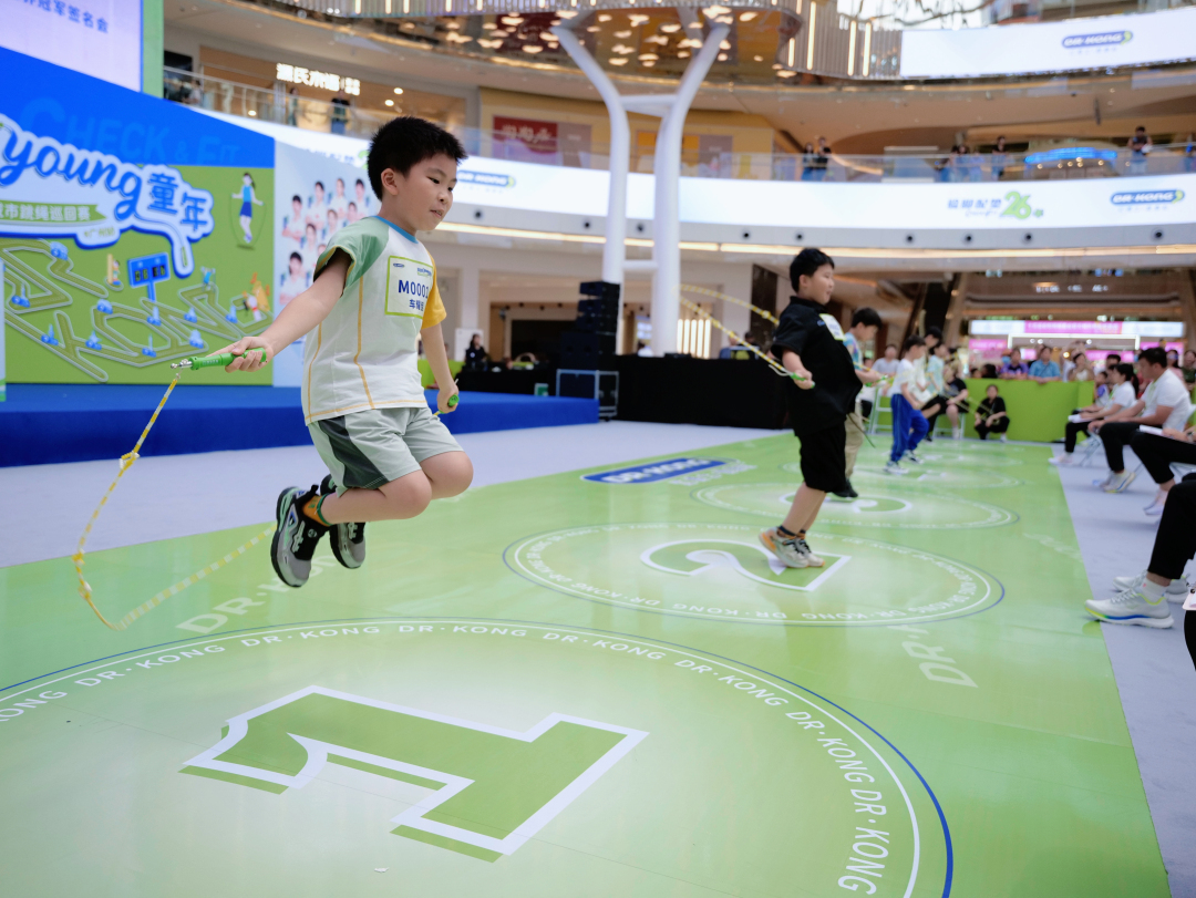 据了解,近年来江博士健康鞋通过“竞技+科普”的创新形式,已在全国十余座城市举办了城市跳绳巡回赛,有效推动进一步向全民普及推广健康运动。随着跳绳被纳入《国家学生体质健康标准》体质测评及多地中考项目,这项运动在青少年儿童群体中的热度持续攀升。由2025年跳绳世锦赛冠军组成的冠军团队,为现场观众带来了精彩纷呈的跳绳表演。其中,跳绳世界纪录保持者、吉尼斯世界纪录创造者、2025年跳绳世界锦标赛上以30秒238次成绩再次刷新世界纪录的岑小林现场凭借近乎看不到绳子的精湛技艺,在30秒单摇跳绳表演上重现了“冠军速度”;冠军团队带来的花式跳绳表演,则以创意与难度兼具的技术动作,展现出运动员强大的节奏把控能力与身体协调性,接连赢得现场观众的阵阵欢呼与掌声。而这场活动更吸引了超过500名小选手参与30秒速度单摇比拼,现场小观众们纷纷表示“看得精彩刺激,希望日后能像冠军们一样,拼出自己最高水平!”