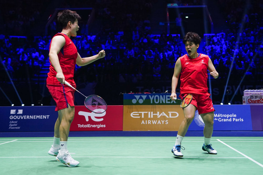 当地时间8月31日,在巴黎羽毛球世锦赛女双决赛中,中国队组合谭宁/刘圣书2比1战胜马来西亚队组合陈康乐/蒂娜,夺得冠军。