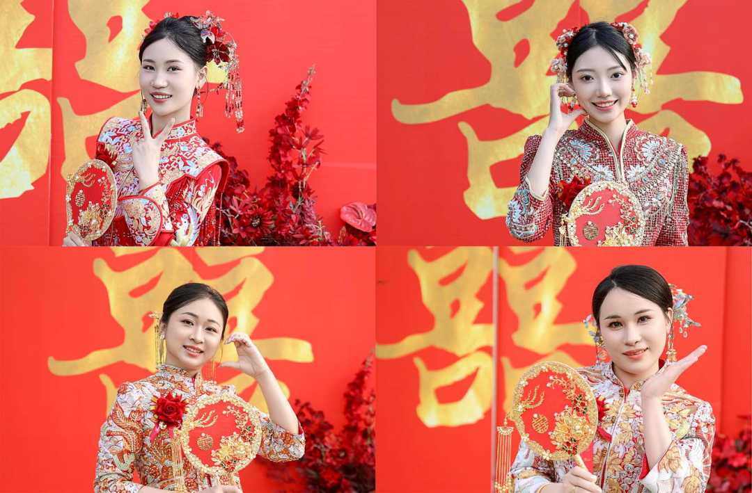 活动当天,东方欲晓时,梳妆区早已喜气洋洋。新娘们身着大红秀禾服端坐镜前,金线绣制的凤凰在袖口栩栩如生,造型师将珠翠花钿与国风元素巧妙融合,轻点朱唇、绾起发髻,这一刻,她们是待嫁的新娘,更是即将与军人并肩的“最美军嫂”。