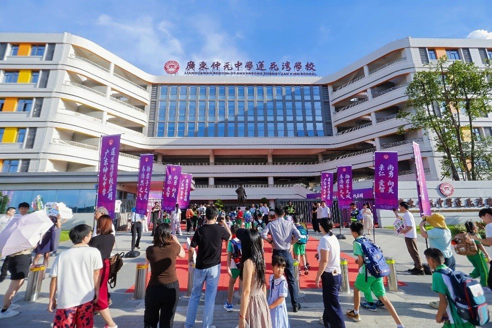 (广东仲元中学莲花湾学校正式开学。)