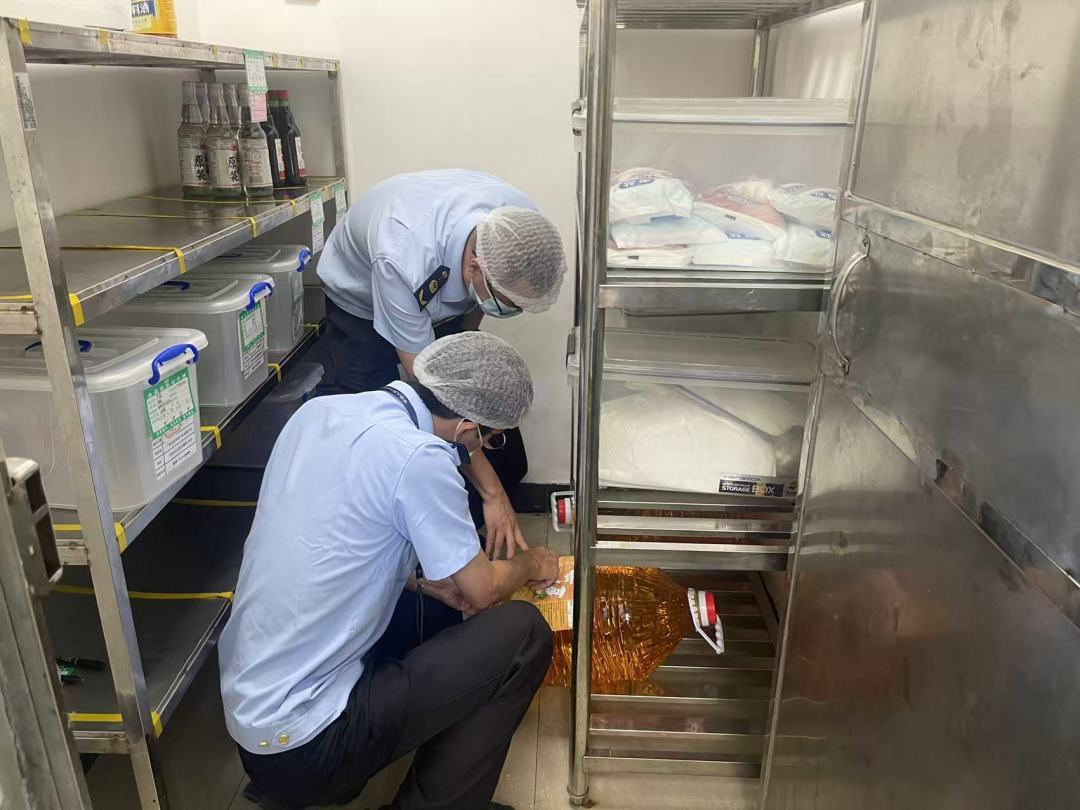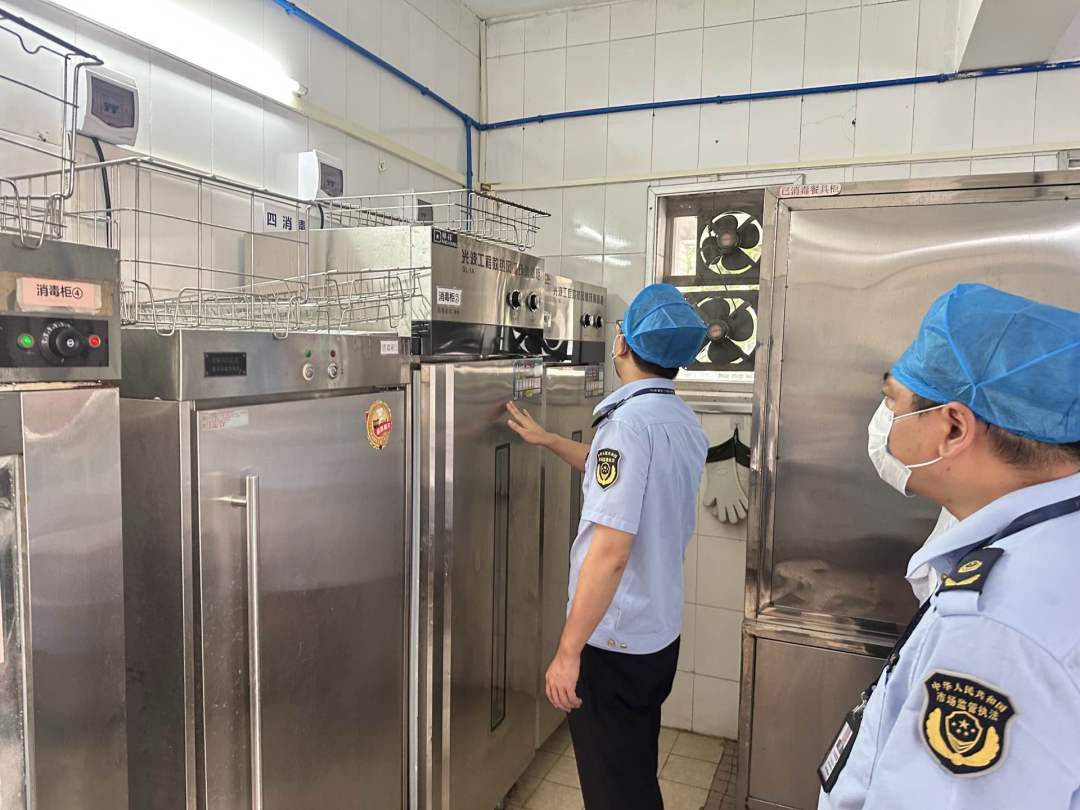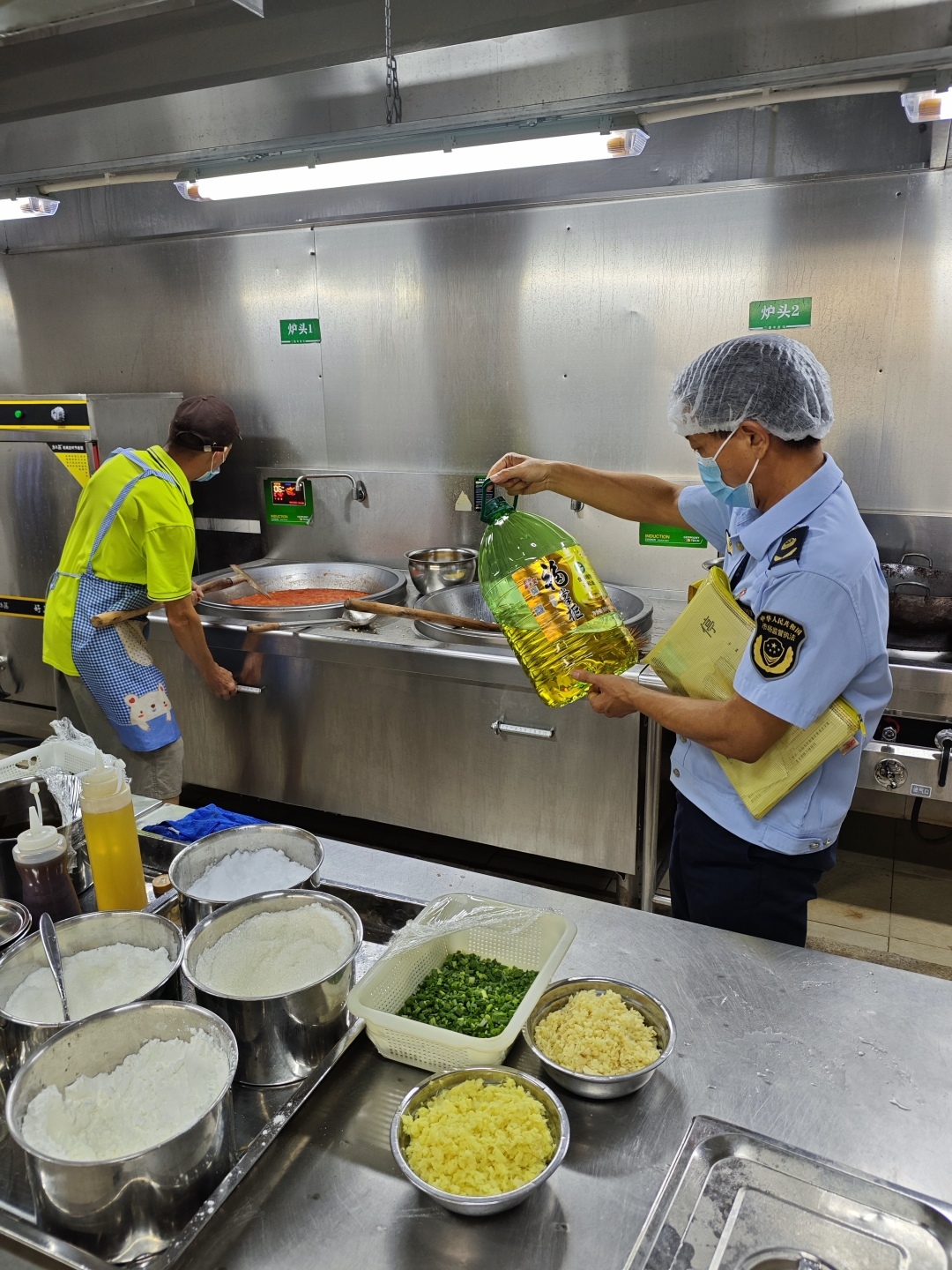 在烹饪区,执法人员观察到厨师们均穿工衣工帽操作,使用的厨具清洁卫生。餐具清洗消毒间内,洗碗机正常运行,温度显示符合消毒要求。每餐次的食品留样也严格按照规定执行,留样量充足且标识清晰。该学校相关负责人表示“我们对食堂食品安全高度重视,暑期期间已对所有设备进行了全面检修和清洁消毒,并对员工进行了专题培训”。