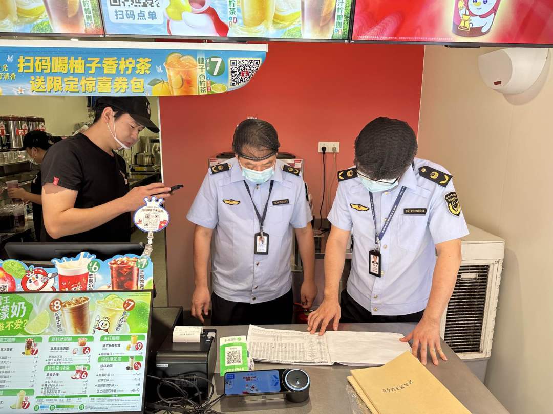 在广州市第六十五中学(桃园校区)周边,执法人员对学校周边200米范围内的餐饮店、小吃摊、便利店和超市进行了拉网式检查,重点检查了尊宝比萨、华莱士、蜜雪冰城等连锁快餐、饮品店,执法人员从营业资质、经营范围、环境卫生、台账记录、从业人员健康管理等方面进行了全面检查,督促校园周边餐饮单位落实食品安全主体责任,确保供餐安全。