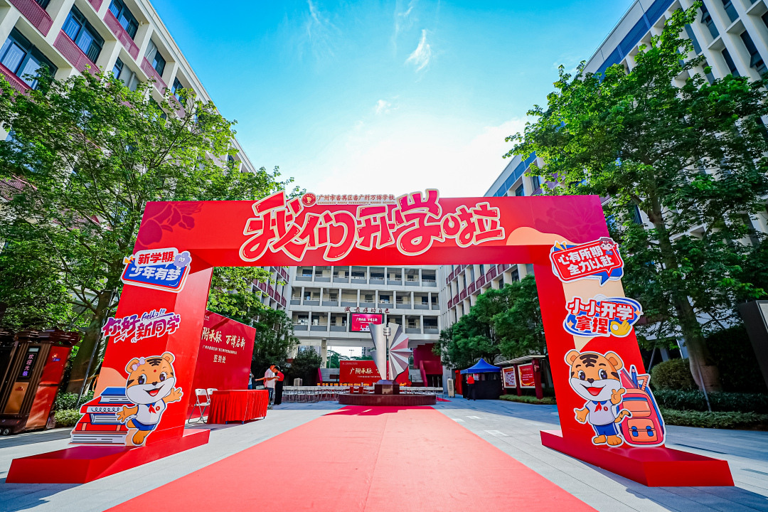 长隆万博片区内的优质公立教育资源正在快速落地。日前,番禺区番广附万博学校(以下简称“番广附万博学校”)正式揭牌,标志着这所九年一贯制优质公办学校正式启用。