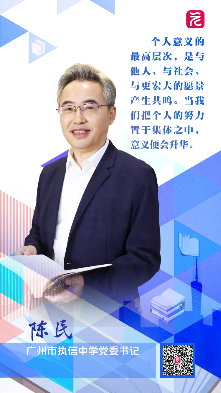 陈民指出,执信中学是孙中山先生为纪念民主革命家朱执信先生而亲手创办的一所学校,执信学子传承朱执信先生为国为民赴汤蹈火的精神。“每年开学,我们都会面向新生举办‘入门礼’,组织新生跨入崇德瀹智门,目的是让学生知道,身为执信人要自豪,更要知道执信是一所具有使命感的学校,我们希望每个孩子既要学习、传承朱执信先生义勇果敢的品质,也要有远大的抱负,成为国家民族未来的栋梁之材,担当起责任和使命。”