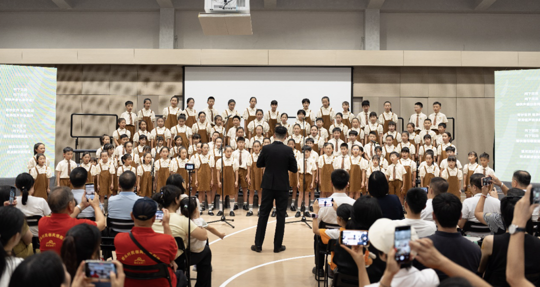 (“耕学+”研学中心举办开幕典礼上,太阳照照童声合唱团进行演出。)