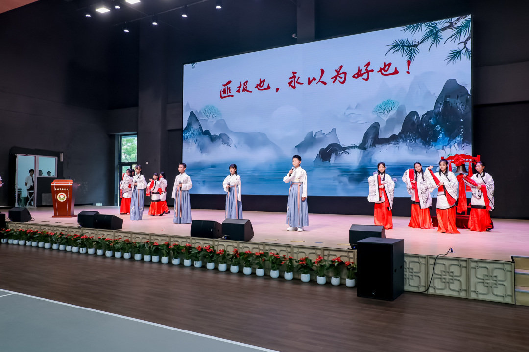 开学典礼上,孩子们朗诵《诗经·木瓜》。