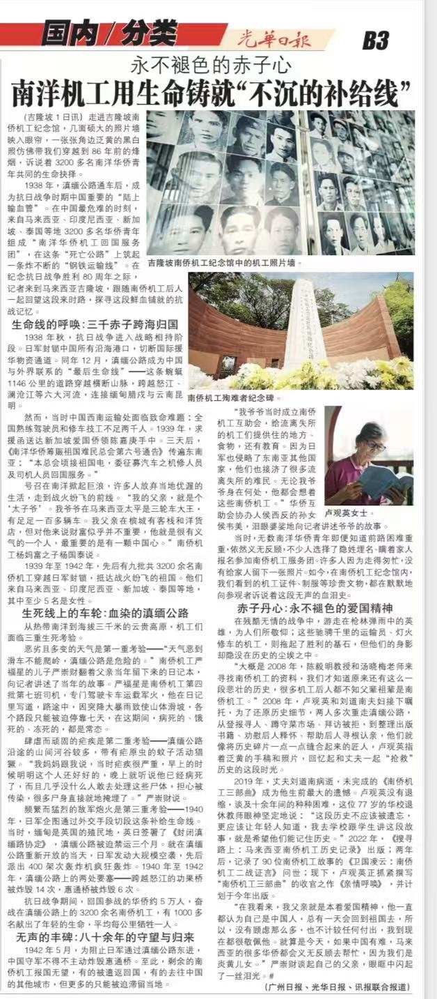 9月2日《光华日报》及其光华网推出南洋机工报道。