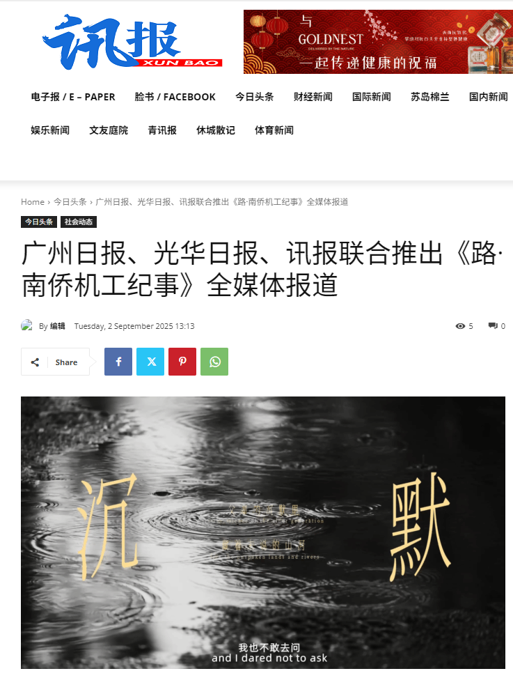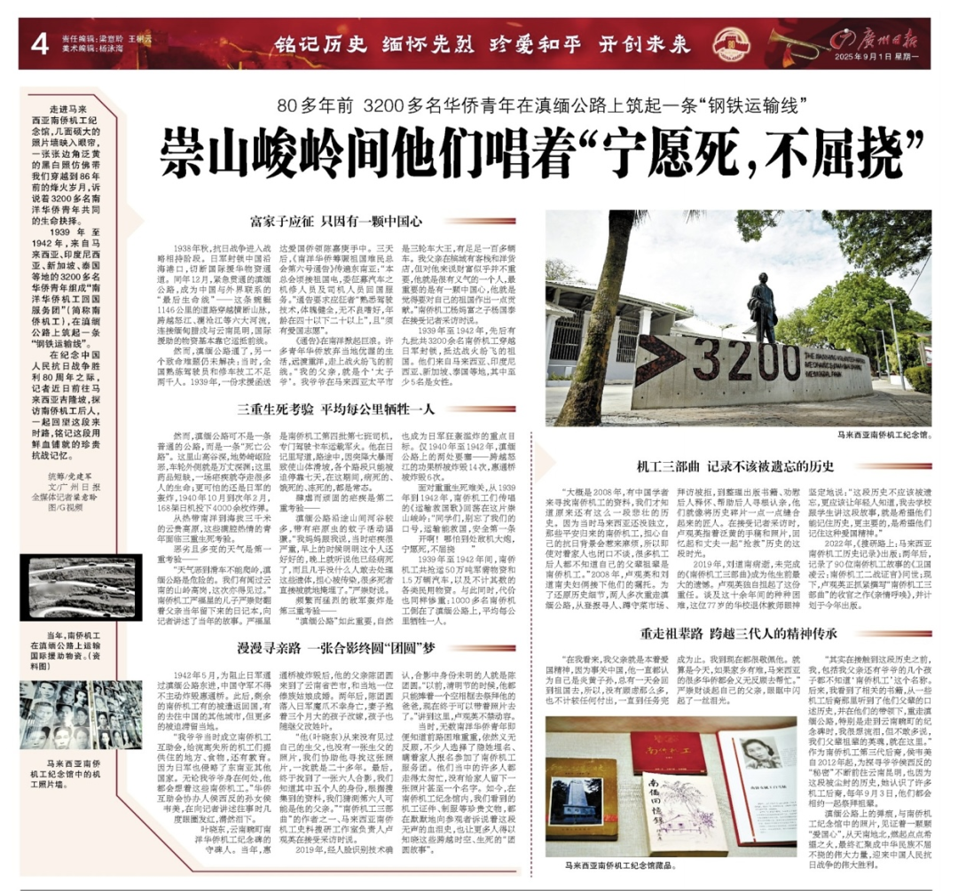 在纪念中国人民抗日战争暨世界反法西斯战争胜利80周年之际,广州日报国传中心结合自身“深耕东南亚”国际传播定位,提前统筹策划,联合马来西亚槟城《光华日报》、印度尼西亚棉兰《讯报》,通过各自纸媒端口、新媒体端口、社交平台账号等多元化传播矩阵,联动推出“纪念抗战胜利80周年‘华侨贡献’”系列报道。