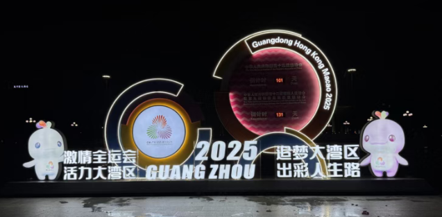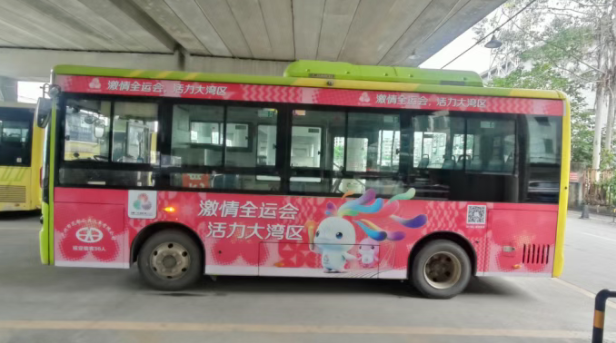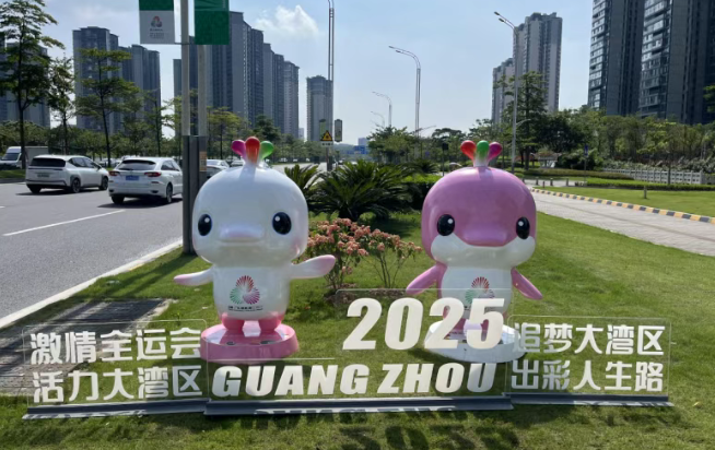景观打造,提升城市颜值:融合吉祥物、会徽、主题口号等元素的5个精美景观小品亮相花都广场、广州北站等地;“激情全运会 活力大湾区”等立体字景观点缀在花都大道、空铁大道;城区主干道的30个公交站台也披上了全运“新装”;5辆车身喷涂着十五运会宣传内容的“全运专题巴士”穿梭于大街小巷,成为了流动的宣传大使,让全运氛围随车而行。
