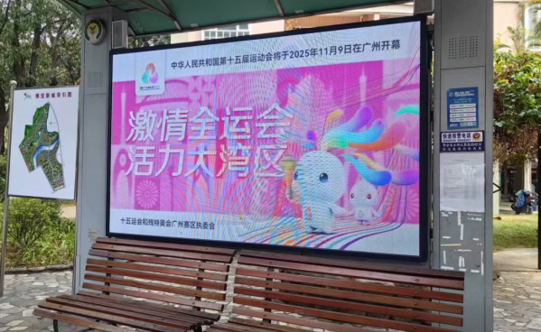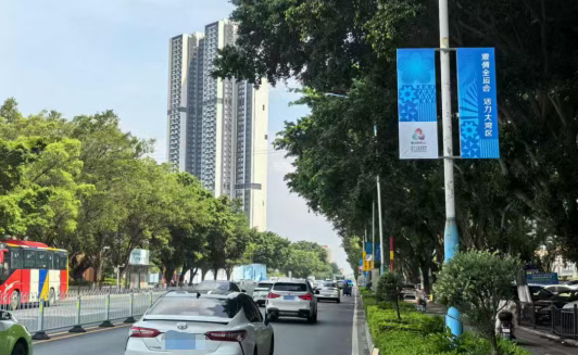 视觉冲击,点亮城市窗口:在全区范围内的政务服务中心、文体场馆、公园广场、商场、景区、交通枢纽等163块LED电子屏及490个LED走马灯上,十五运会的主题口号、宣传片、海报等轮番展播,形成强大的视觉矩阵。同时,在高速出入口、各镇街重要节点、交通沿线等重点位置,精心设置了8个大型户外宣传大牌和874面灯柱道旗,打造了醒目的城市宣传风景线。