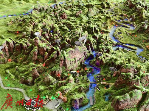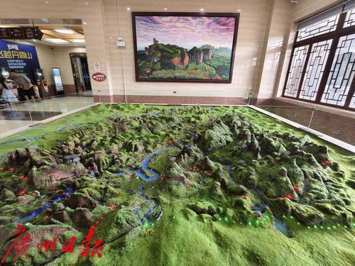丹霞山博物馆的丹霞山微缩模型,清晰地展示了丹霞山的独特地貌。