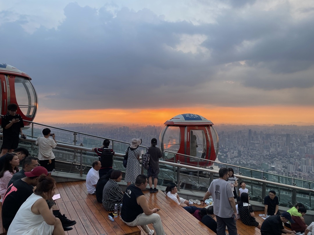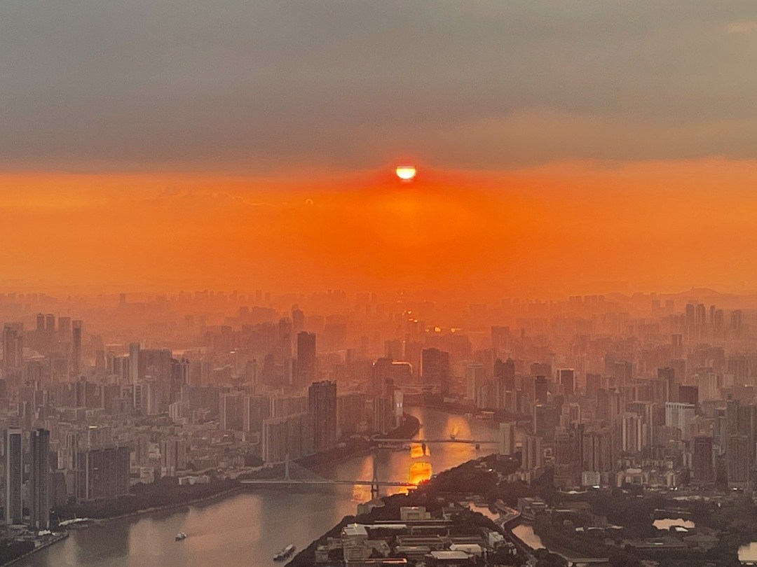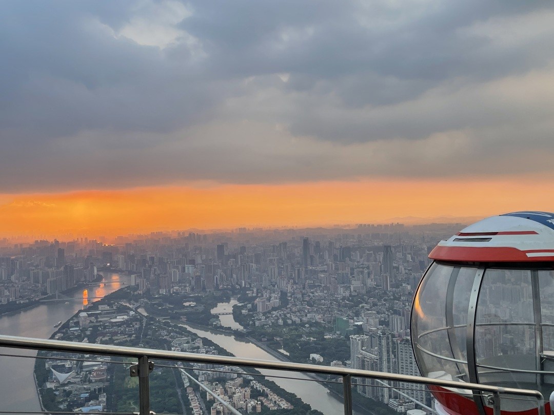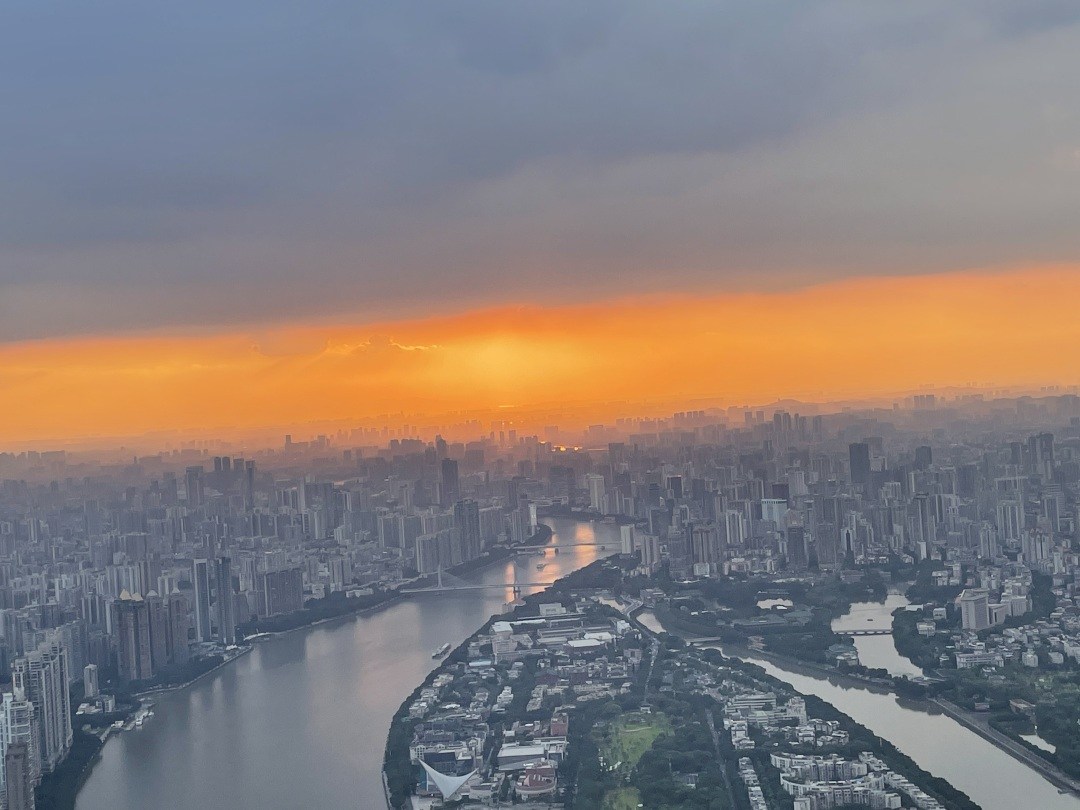 9月3日傍晚,广州的天空悄然织就了一幅瑰丽画卷。从广州塔450米户外平台俯瞰,霞光倾泻而下,为云山珠水披上了金色的纱衣,将广州装点得如诗如画。