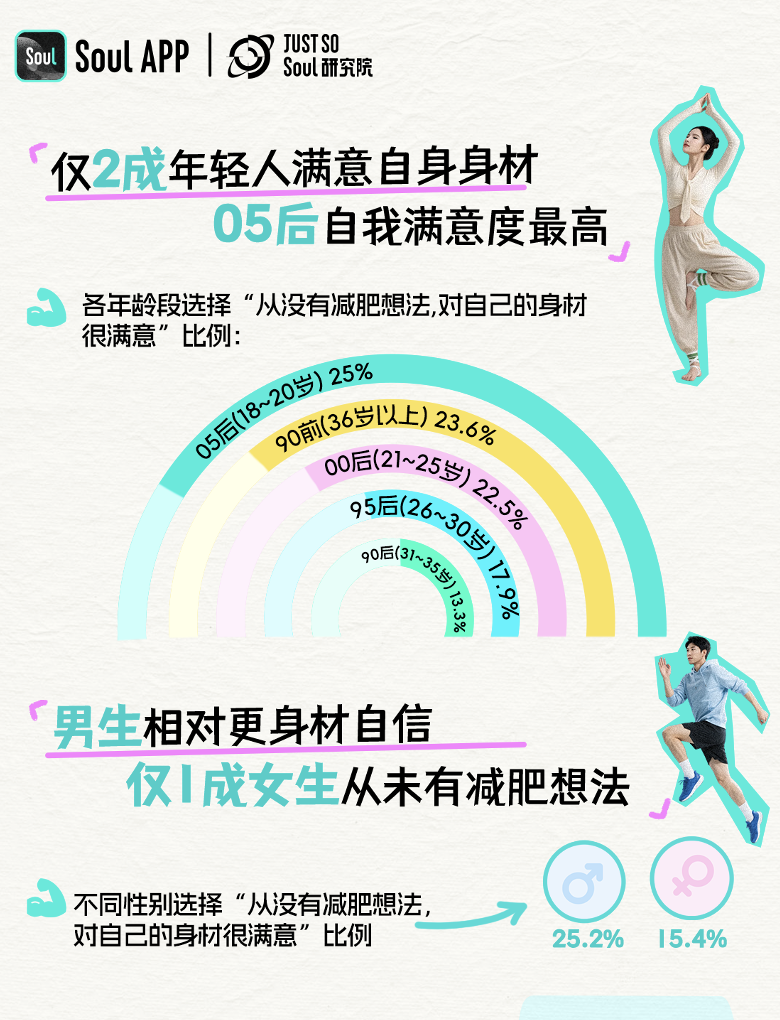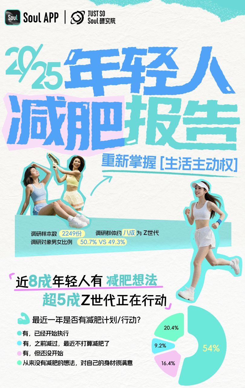 9月3日,记者获悉,Soul App旗下Just So Soul研究院发布《2025 年轻人减肥报告》(以下简称“报告”)。此次共回收2249份有效的调研问卷,其中,有约八成的调研对象为以95后、00后为代表的Z世代群体。