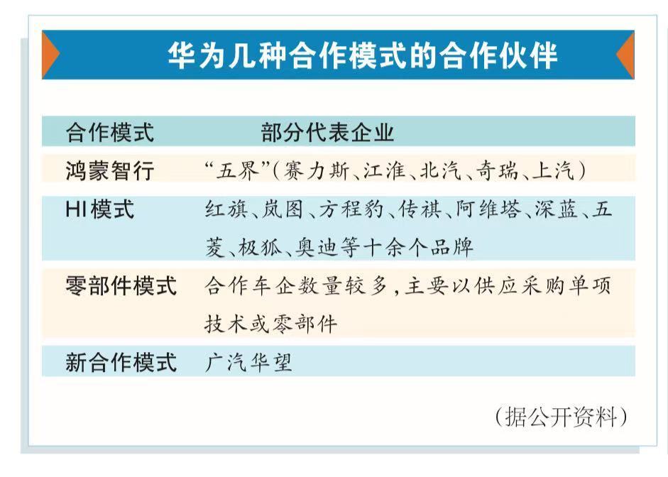 如果回到三年前,可以发现,拥有一整套全栈智能汽车解决方案的华为,正努力通过鸿蒙智行、HI模式、全栈技术供应等不同合作模式赋能车企,通过不同合作深度实现品牌区隔,梯度化合作模式在短期内有效避免内部竞争。