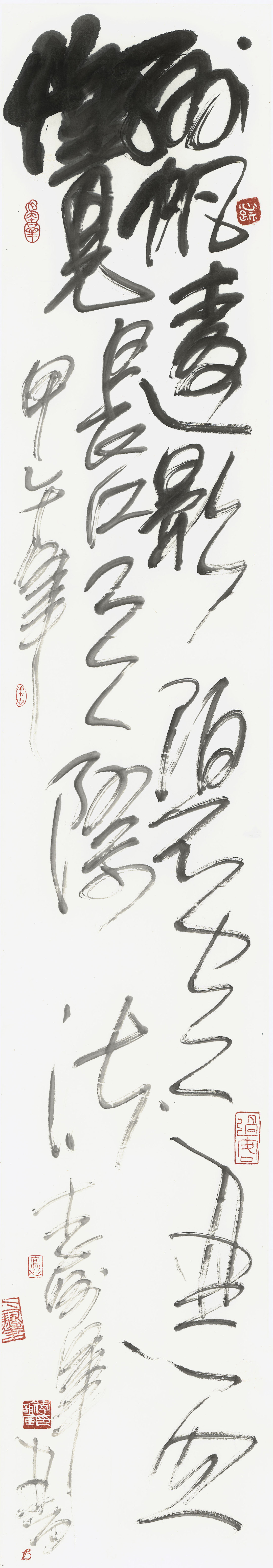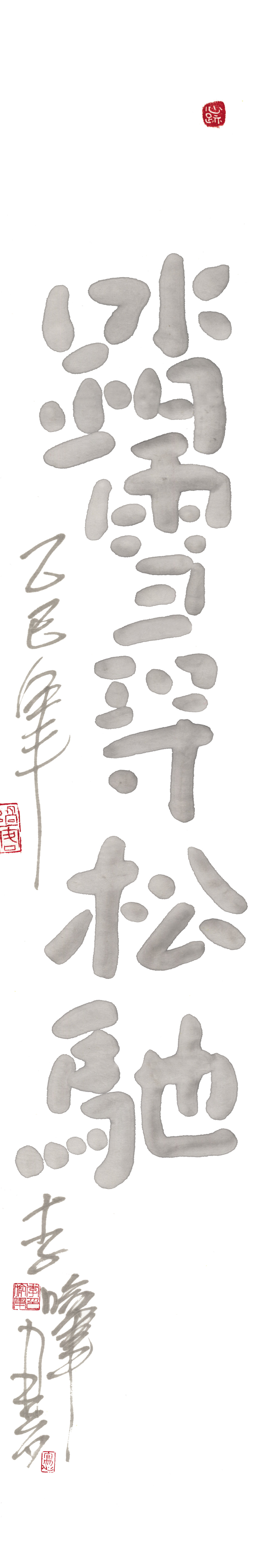 2.真情融入。要让文字有温度,真诚面对自己的内心。抒写需要勇气去触碰和正视自己的真实情感,如喜悦、悲伤、岁月流逝、四季变化、爱和孤寂等等,然后去寻找情感上的笔划和笔墨意义。通过感悟自然的景象、场景、生活细节等等,将自己与自然共情,并将自己的情绪与书法笔墨的变化抽象地表现出来。如“伤感”,可从“秋雨荷塘中的枯枝落叶”中,体会、感悟、寻找笔墨与笔画的意境表现。