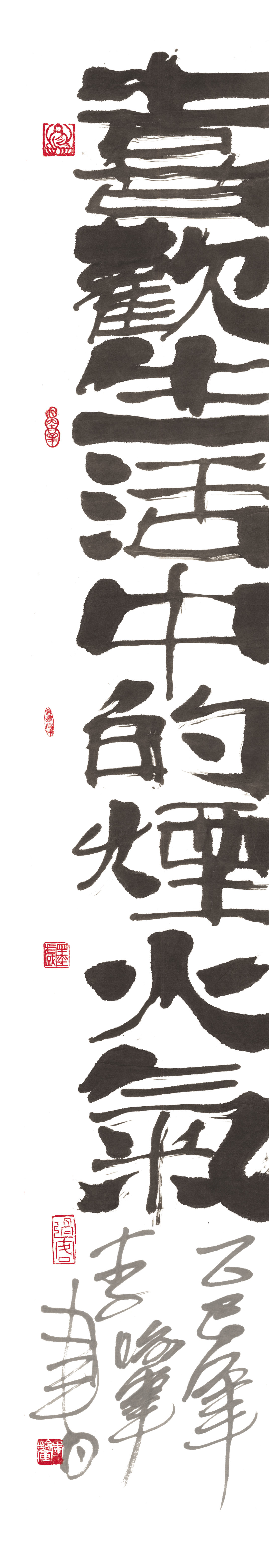 在一个毛笔书法早已淡出日常生活的时代,李喻军并未将其局限于传统“书写”的功用性与规范性,而是强调它作为情感与意境载体的“抒写”价值,体现出从既定形式美感和语义程式到内在生命力的嬗变。尤为值得注意的是,他将书法与自然、生活与直觉紧密相连,提出“从学习大自然开始”的理念,呼应了中国传统文化中“道法自然”的哲学根基。书法不再只是作为特定阶层文化的象征,而是融入日常、映照心境的艺术实践。书写者通过笔墨与自然共情、与时代对话,实现了一种“诗画一体”的新表达。