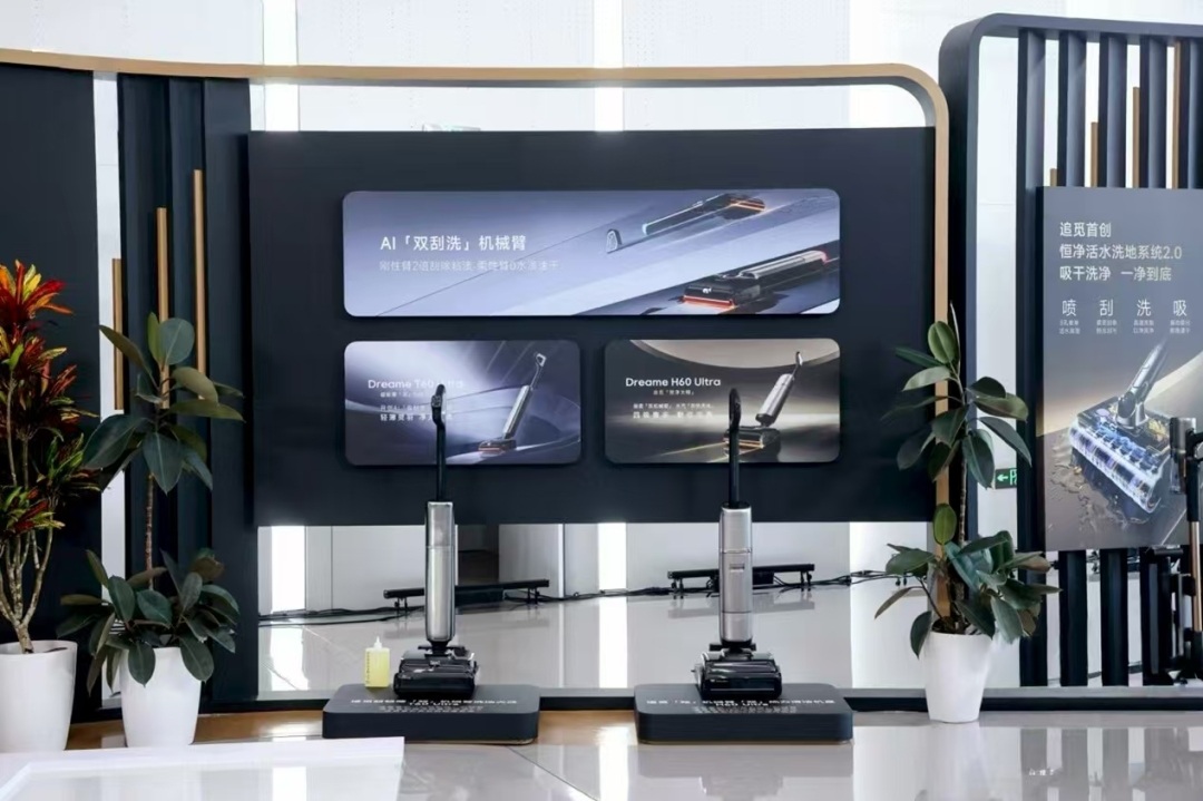智能清洁领域,洗地机也有“拟人化”的清洁表现——“机械臂科技树”再次延展,全球首创AI“双刮洗”机械臂在T60 Ultra/H60 Ultra两款旗舰洗地机产品中亮相,深度融合了具身智能理念的“拟人”清洁逻辑,针对地面黏腻污渍、水渍及边角污渍提供了创新的解决方案。而搭载追觅首创“拖布分区智换系统”的新款扫地机,则通过针对不同地面区域更换不同材质拖布的特殊运载系统,进一步解决了家庭地面清洁时的交叉污染问题。凭借品牌首创的恒净活水洗地系统2.0技术,吸尘器也拥有了处理家庭难题的干湿混合垃圾的能力。