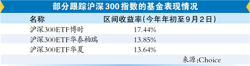 Choice数据显示,从今年年初至9月2日,跟踪沪深300指数的ETF产品中,沪深300ETF博时、沪深300ETF易方达等收益超15%,而沪深300ETF华夏、沪深300ETF华泰柏瑞等收益在13%左右,首尾之间相差超3.5%;跟踪CS人工智能主题指数的ETF产品中,人工智能ETF易方达比人工智能ETF平安的收益高出8%。