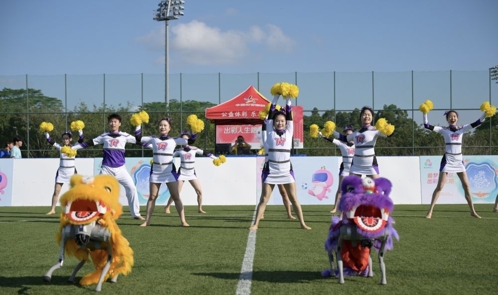 体育展示处以“科技赋能人文,共融传递激情”为核心,精心准备了头戴岭南醒狮造型帽的机器狗表演、共融啦啦队暖心助力舞蹈,通过视频、音频与现场表演的多维联动,将赛场转化为活力舞台,不仅为比赛预热升温,更传递了残疾人体育事业中“多元参与、全民共享”的积极信号。