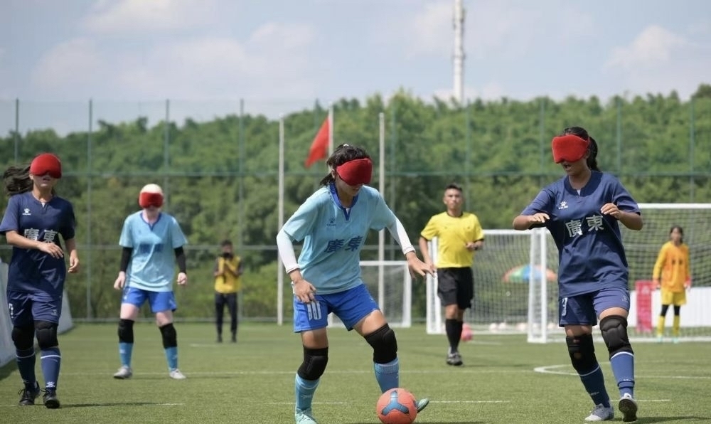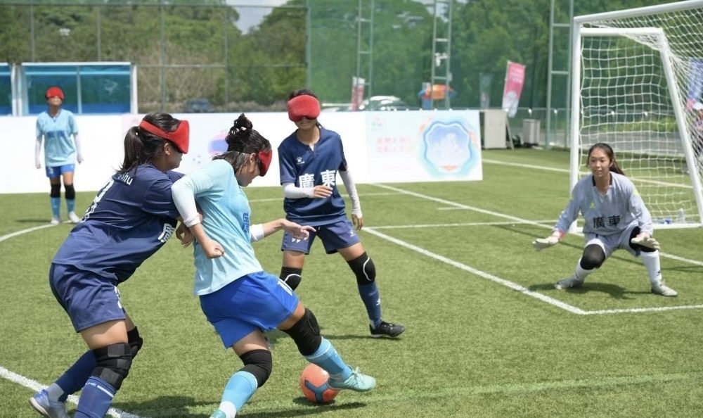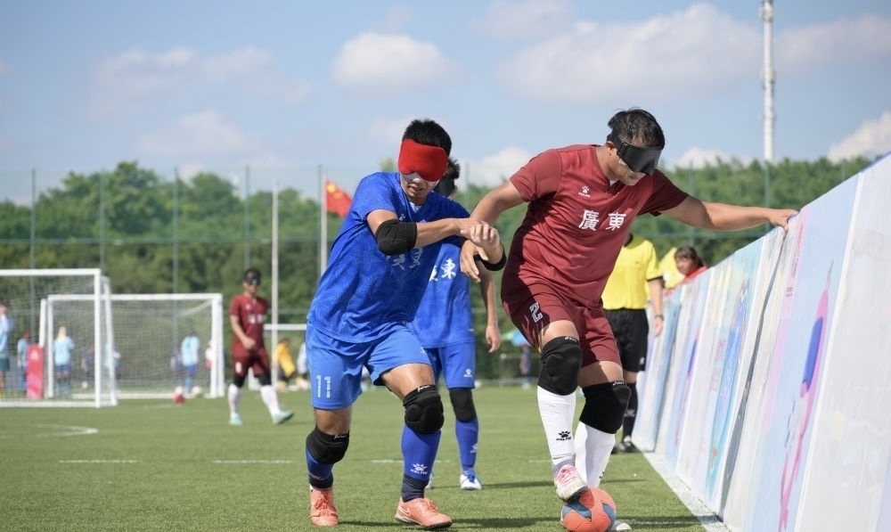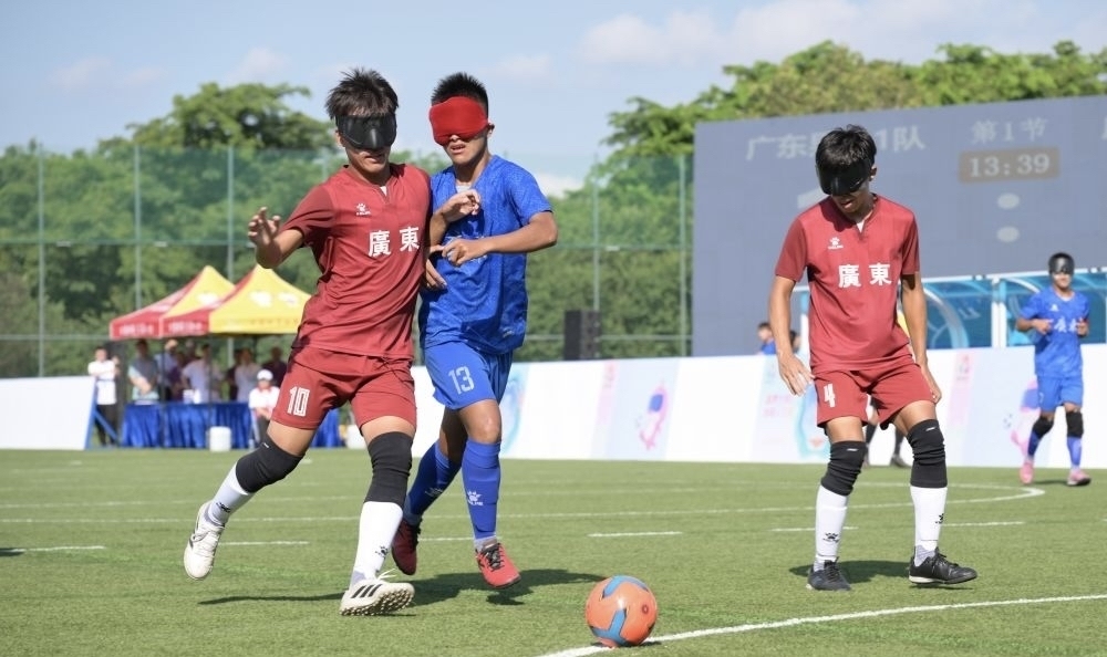 9月4日上午,全国第十二届残疾人运动会暨第九届特殊奥林匹克运动会(以下简称 “残特奥会”)盲人足球项目测试赛,在广州大学城体育中心体育场2号副场举行。广东盲人足球男1队、男2队、女1队、女2队共46人参赛竞技,最终广东盲人足球男1队6比3战胜男2队,女1队2比1险胜女2队。赛场亮点十足,球员以热情与拼搏呈现精彩赛事,残特奥会盲人足球竞委会各处室用心用情全力保障比赛顺利开展。