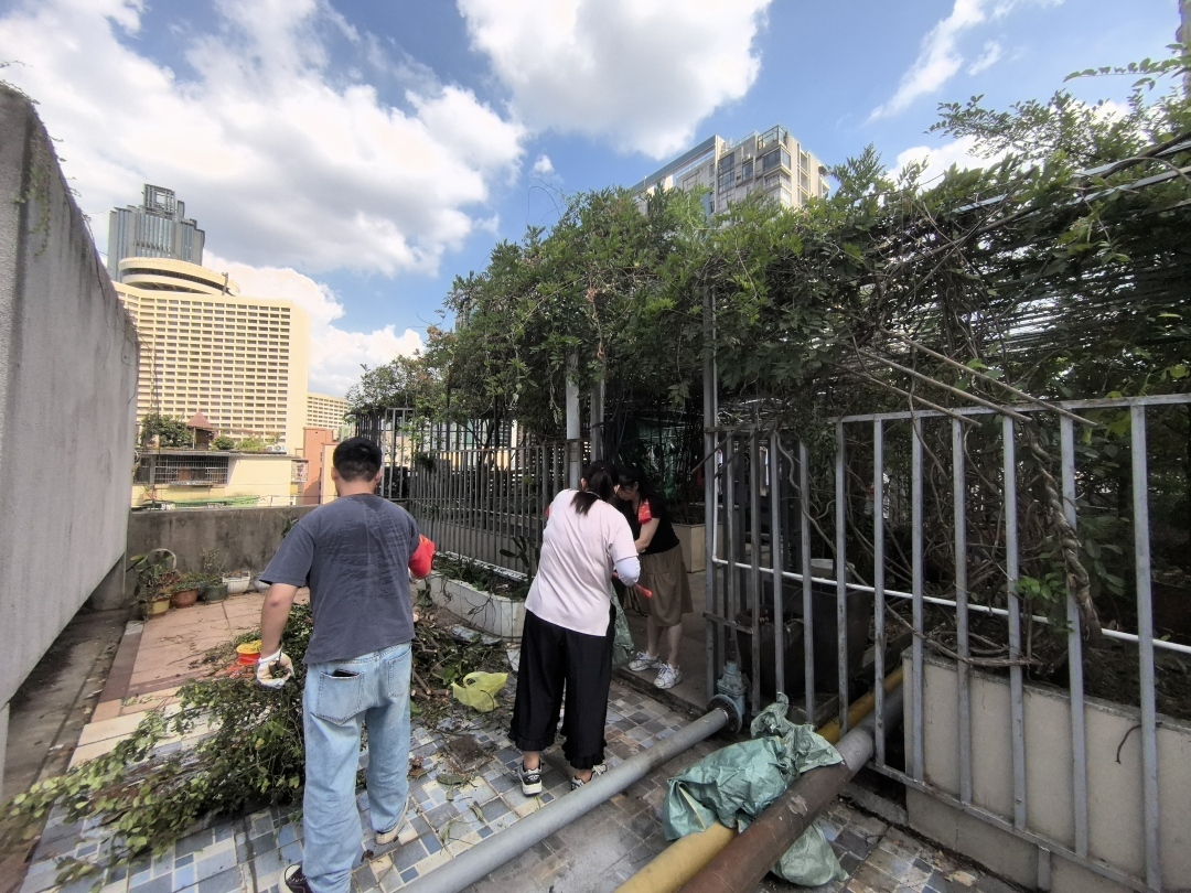 为筑牢登革热、基孔肯雅热防控屏障,建设街以“定人员、定区域、定单位”为核心策略,发动机团单位、物业小区、居民群众三方联动,掀起爱国卫生统一行动热潮。下午3点,记者在建设街道中马路社区的一栋居民楼天台看到,社区积极发动各个小区物业、在职党员志愿者共同参与。辖区内广州市审计局的党员志愿者、榕树头快递小哥志愿服务队与街道驻点社区团队针对登革热传播媒介蚊虫的栖息特点,重点攻坚天台,对天台区域重点清除废弃容器、枯枝落叶、塑料薄膜等易积水杂物,并对天台角落、排水槽等隐蔽区域进行细致排查,进一步降低“两热”传播风险。
