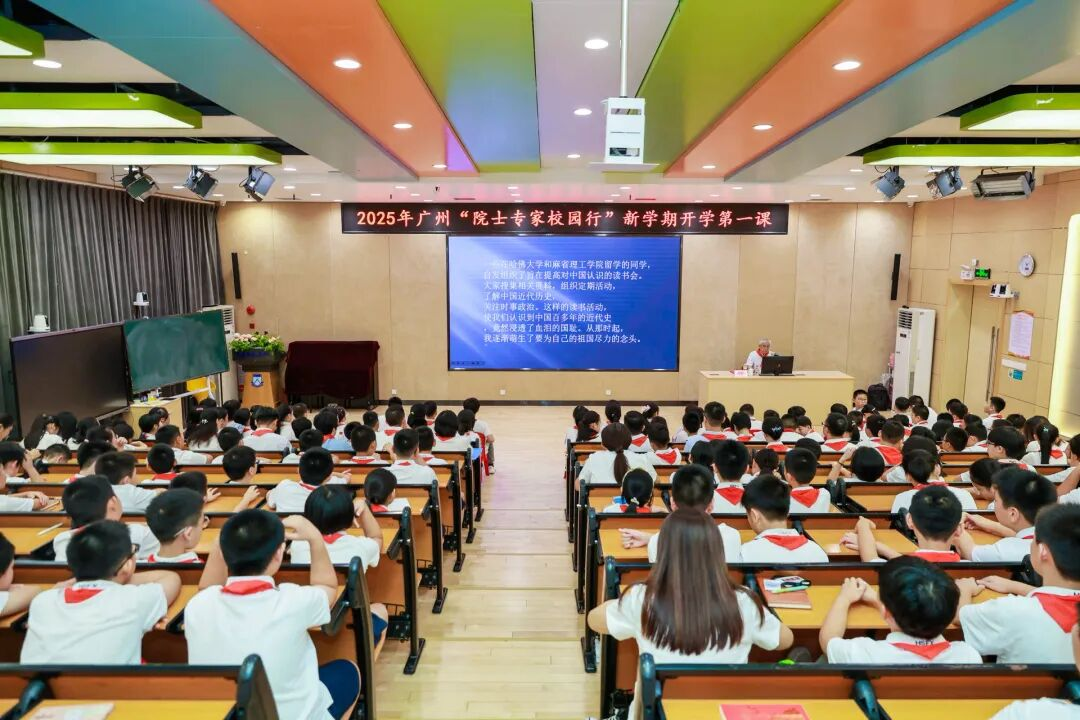 9月2日,2025年广州“院士专家校园行”新学期开学第一课在华南师范大学附属小学正式开讲,特邀中国科学院院士、暨南大学粤港澳中枢神经再生研究院院长苏国辉为同学们带来《自强不息成长路》专题科普讲座。