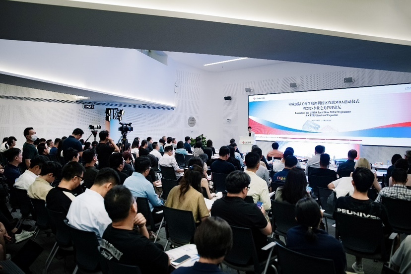 中欧国际工商学院院长汪泓,前海深港现代服务业合作区党工委副书记梁珂,中欧副院长兼教务长濮方可(Frank Bournois),中欧京东运营及供应链管理学教席教授、副教务长(深圳校区)赵先德,中欧市场营销学副教授、副教务长(MBA)、MBA课程主任张玲玲,中欧院长助理、深圳校区首席代表刘湧洁,中欧金融学副教授单宏宇等出席了中欧国际工商学院在职MBA启动仪式暨2025专业之光管理论坛。