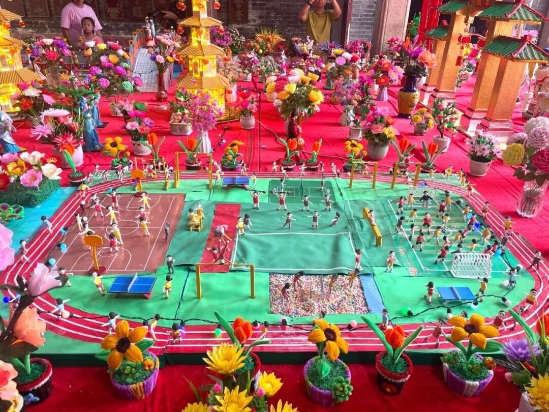 更令人关注的是今年的全新作品“儿童欢乐园”,这件作品尽显全运特色:一个微缩运动场上聚集了篮球、乒乓球、足球、举重、羽毛球、体操等多个项目,场面热闹非凡,超过百个小人像在运动场上挥洒汗水。梁凤仪介绍,她在创作时还特地研究了各项运动的场地、人数和动作,历时两个多月才完成,展现了浓厚的全民健身氛围。