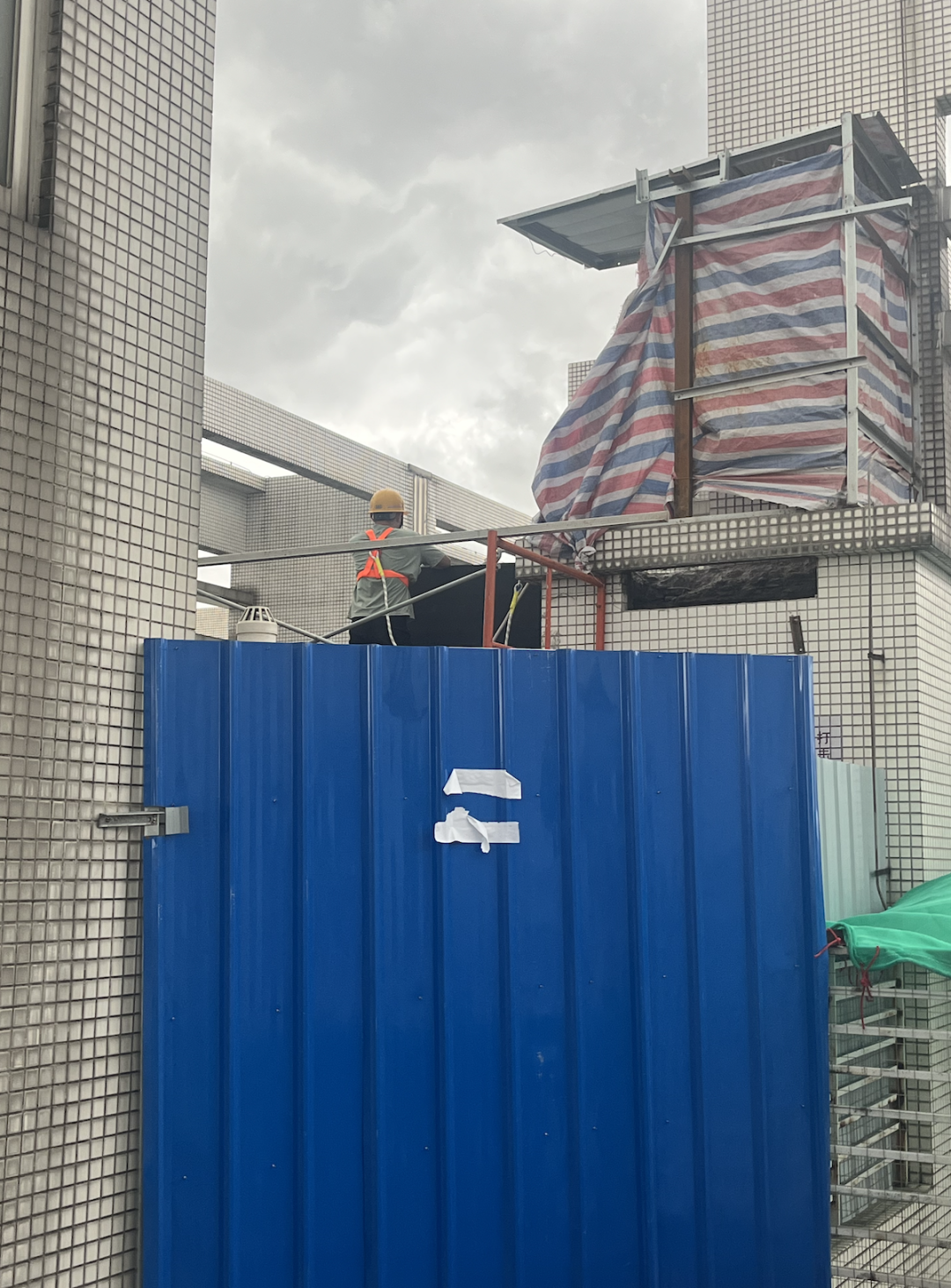 记者又来到19栋天台看到,现场已经进行围蔽,有几名工人在进行烟道施工,但不少住户对此仍有担忧。住户朱先生表示,排烟通道也属于小区公共部分,对烟道进行改造,是否也需要先经过楼栋中大多数住户同意才能开展?此外,一旦将排烟孔扩大,即便商户们的排烟可以更通畅,后续会不会有更多油烟排入居民家中?
