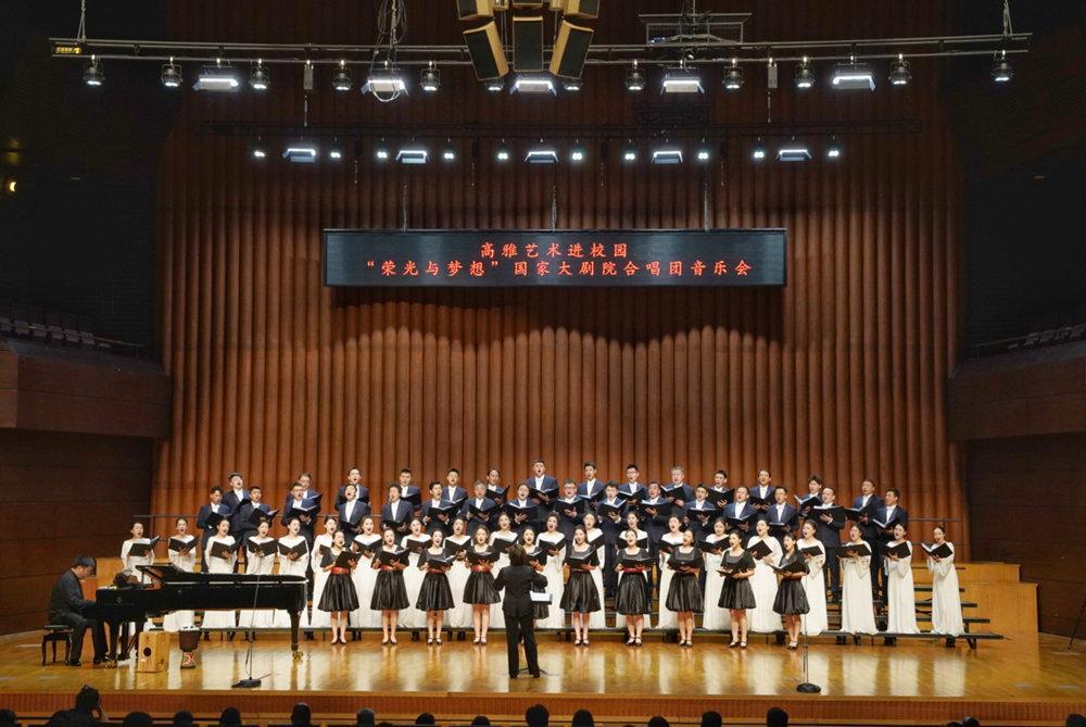 国家大剧院副院长张尧表示,国家大剧院合唱团始终秉承“人民性、艺术性、国际性”宗旨,积极履行公益文化使命,坚持走进校园、社区、医院等基层单位,推动艺术深入人民生活。他指出,“高雅艺术进校园”活动由教育部、文化和旅游部、财政部共同主办,国家大剧院承办。该项目构建了艺术院团与高校协同育人的重要通道,是国家美育工作的重要实践。国家大剧院将持续深化与院校合作,推动优质资源向基层延伸,为社会主义文艺繁荣发展贡献力量。