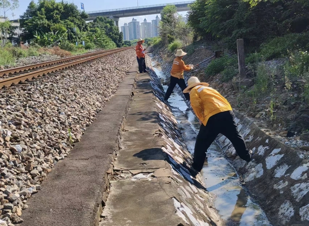 隐患排查同样前置发力。该段组织车间、工区对管内重点施工地段核查“工完料清”情况,拆除或加固脚手架、临时工棚;对线路、桥涵、隧道、路基等防洪关键处拉网排查,清理长大路基段、汇水集中区段及排水不良地段的排水设施,砍伐沿线危竹危树,消除彩钢瓦等硬飘物安全隐患。“我们提前对沿线隐患逐一过筛,就是要把风险堵在台风来临前。”湛江西线路车间主任杜锋表示。