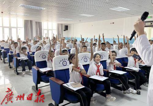 中山眼科中心走进疏附县第三小学,小朋友们在积极回答科普讲座的提问。