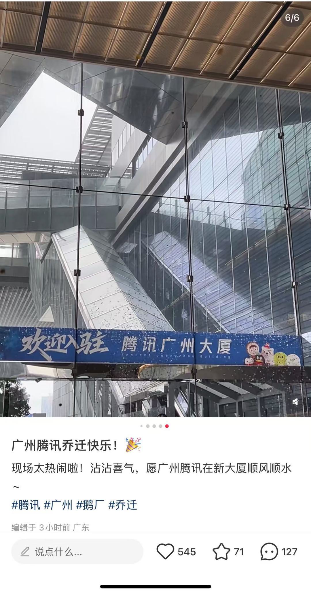 此外,记者了解到,目前有部分员工搬进腾讯广州总部大楼,但是还没有全面进驻。