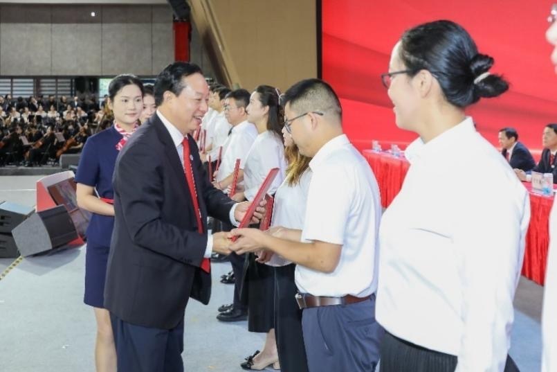 三尺讲台勤耕耘,立德树人育桃李。典礼上,华工党委书记章熙春、副校长吴波、副校长许勇分别在三校区为2025级新生辅导员、班主任代表颁发聘书。