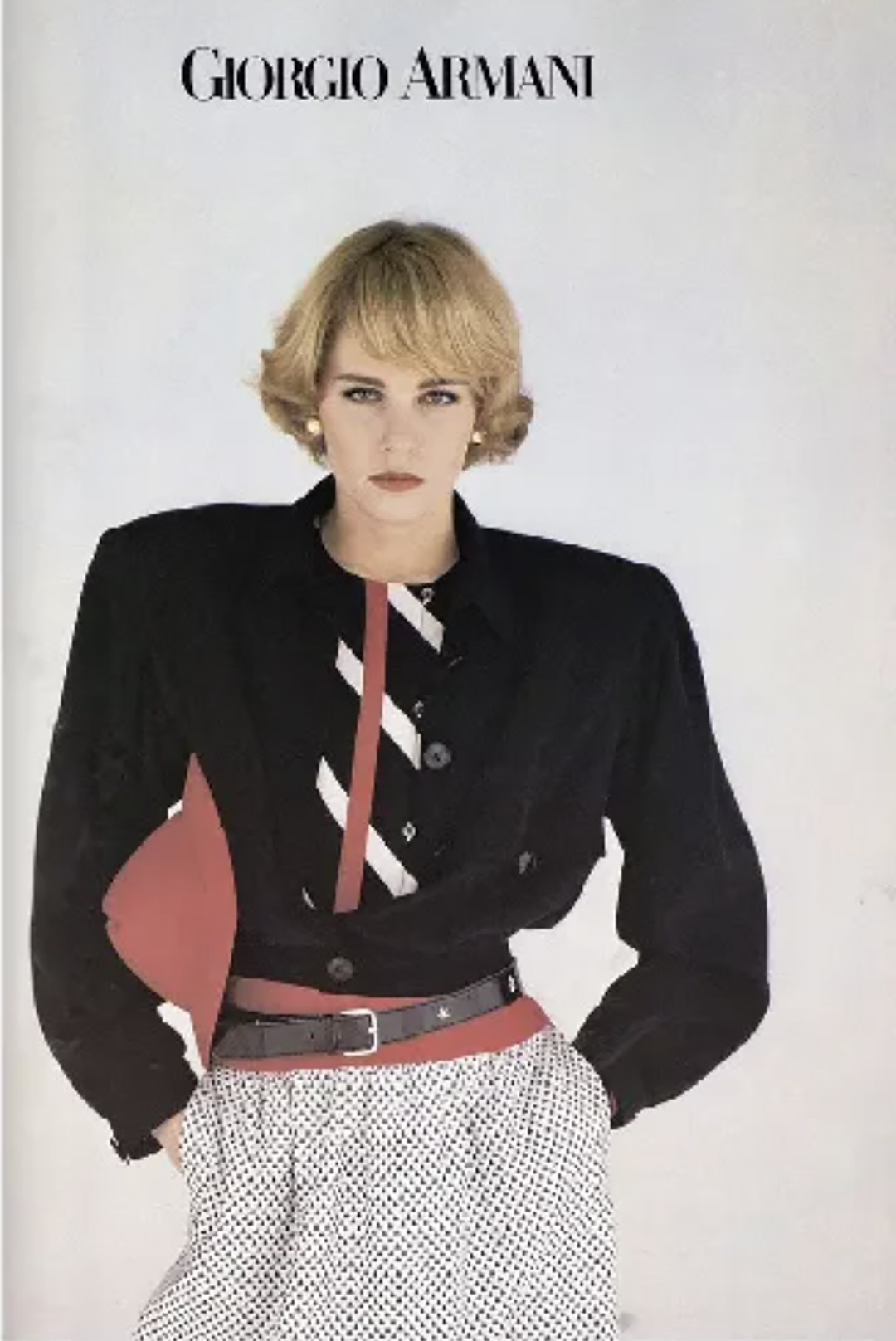 在邓颖看来,阿玛尼敢于挑战当时流行的“宽领窄腰”审美,在细节处改造传统正装,为女性西装赋予棱角分明的轮廓,促使人们更快、也更愉快地实现“用时装表达立场”以及“回归生活”的新审美诉求。