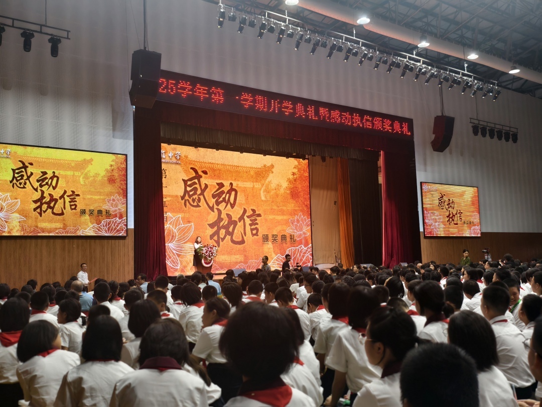 今年秋季学期开学典礼中,广州市执信中学举行了第十五届“感动执信”颁奖典礼,在科创、服务、艺术等多领域表现优异的学生、校友、家长代表,还有饭堂厨师团队,逐一上台领奖。