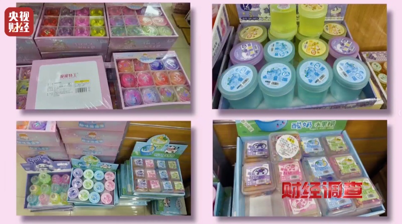 总台记者调查发现,在济南市、郑州市、临沂市等地的部分超市、文具店中,均有正在出售的“三无”软泥玩具。
