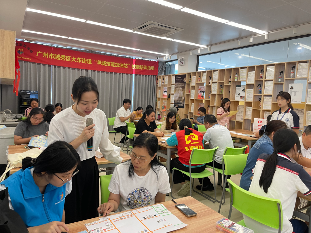为全面实施“全民技能培训行动”,构建覆盖全市的“羊城技能加油站”,打造15分钟技能培训服务,广州市人力资源和社会保障局提出建设“羊城技能加油站”,在越秀区人力资源和社会保障局的指导下,大东街作为越秀区首个开班的街道,坚持资源整合、有机联动,利用辖内职业院校(含技工院校)、就业驿站、羊城家政基层服务站等各类培训载体资源,建设“羊城技能加油站”。