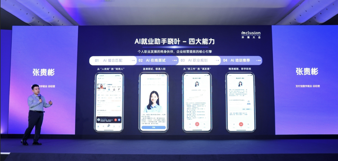 目前,市场上部分求职者找工作时,面临着匹配差、响应慢等问题,而企业招聘端就存在着竞争加剧、人员高频流失等问题。支付宝数字民生事业部数字就业总经理张贵彬表示,AI就业助手“晓叶”将通过4大核心能力,包括撮合匹配岗位、在线面试、职业规划和培训推荐,提升就业市场两端的服务。