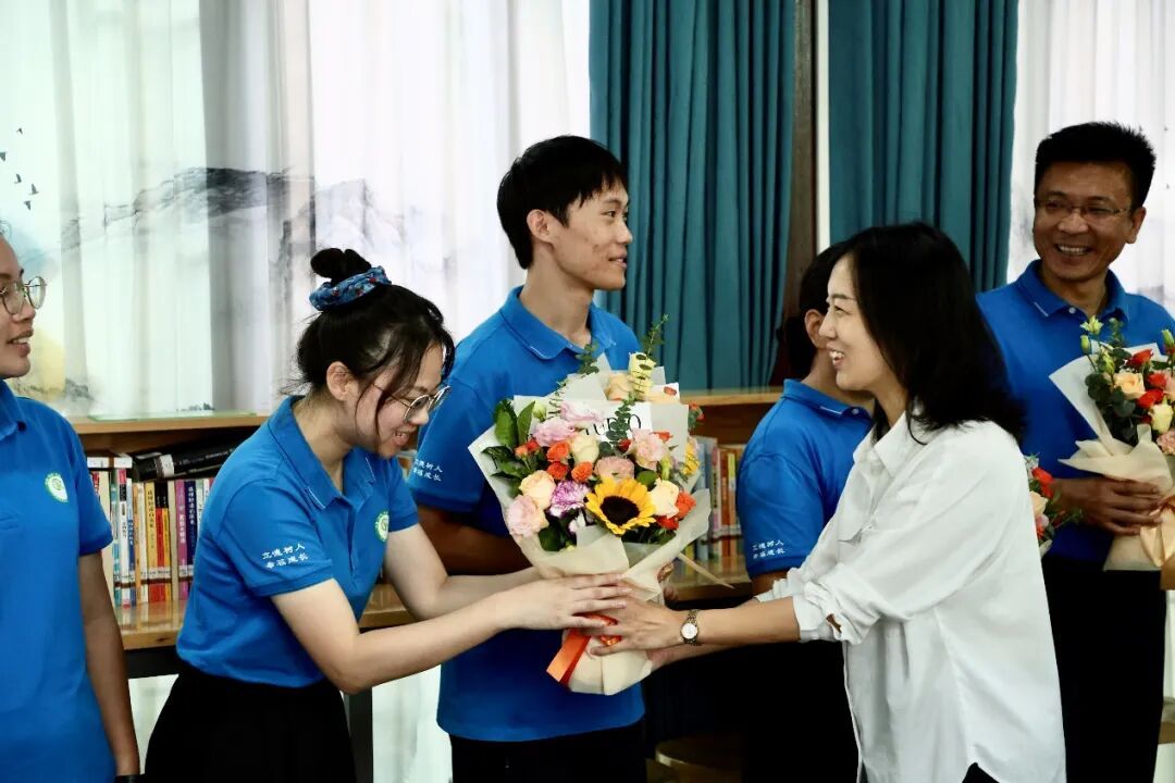 慰问组代表向教师代表送上精美的花束,感谢老师们长期以来在教育教学岗位上的默默奉献和辛勤付出。一束束鲜花绽放在老师们手中,更是绽放在每一位教育者的心田,现场气氛温馨感人,教师们脸上洋溢着幸福与感动。