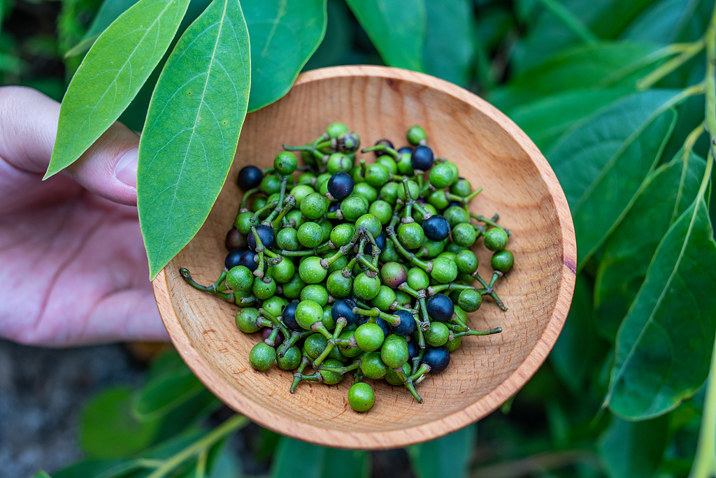 木姜子果实形如青花椒,闻起来有一股淡淡的柠檬清香,含在嘴里微微辛麻,但回味清爽,被誉为调味料里的“山妖”。