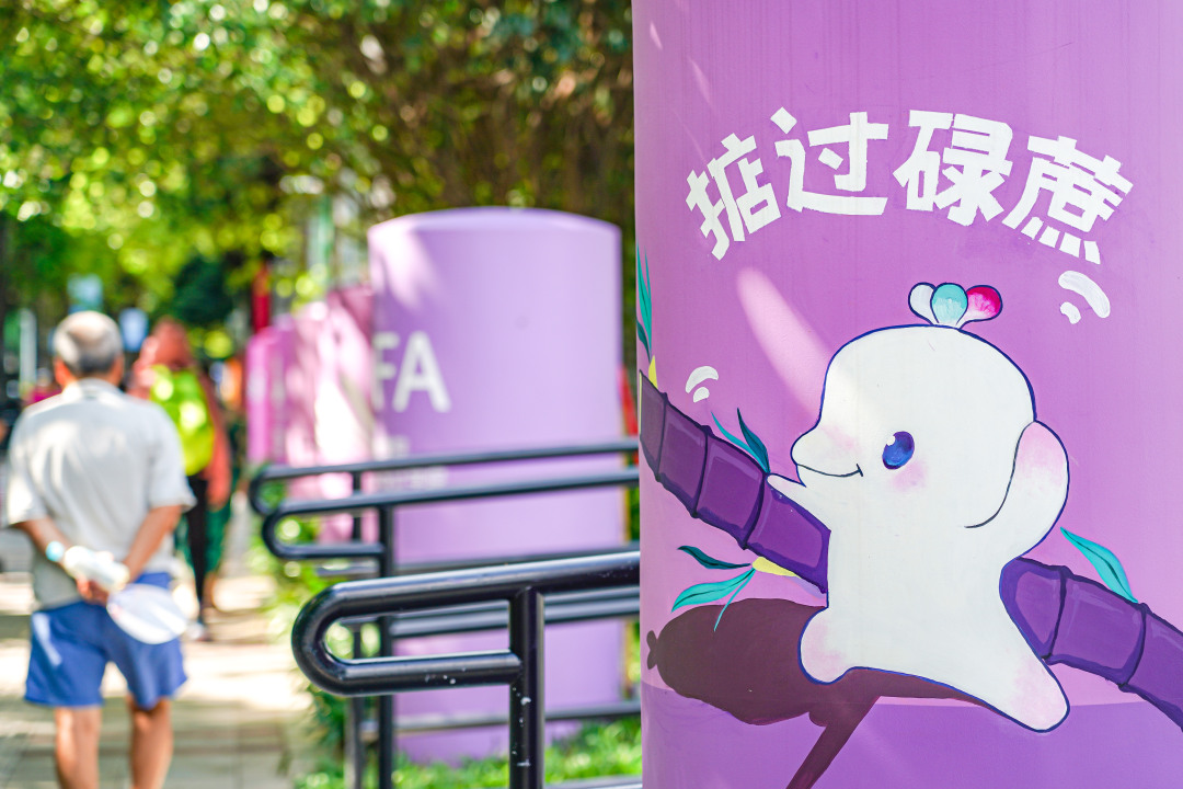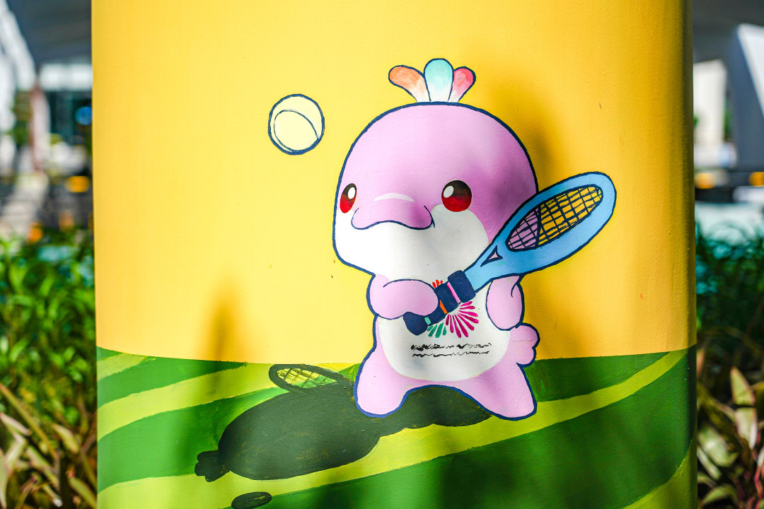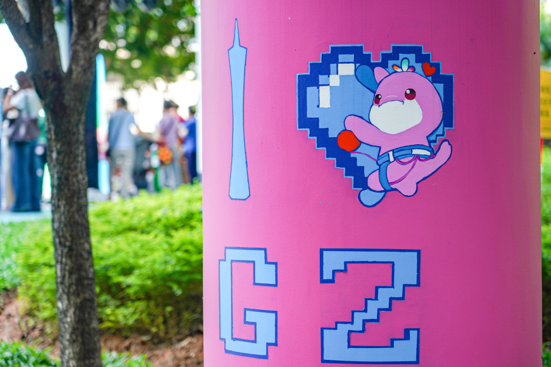十五运会和残特奥会吉祥物、早茶一盅两件、粤语谐音“雷猴椰”……白色的柱墩披上“新衣”,彩绘图案融入体育运动元素、广州地域特色、岭南文化符号与潮流活力因子,成为市民驻足欣赏、拍照打卡的“文化胖墩墩”。