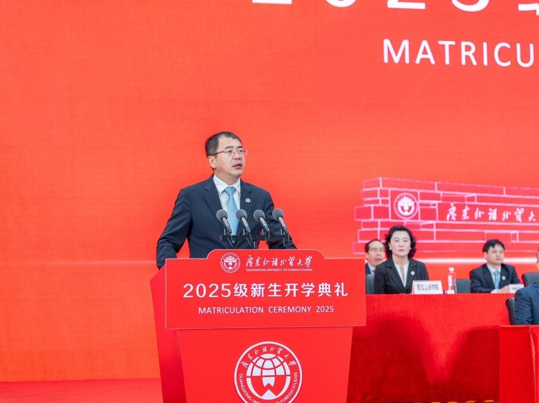 9月10日至11日,广东外语外贸大学2025级新生开学典礼暨“大学第一课”先后在该校白云山校区和大学城校区举行。8178名新生怀揣炽热梦想踏上新征程。广外党委书记石佑启以“赓续六秩荣光、共赴时代新程”为主题,为新生讲授“大学第一课”。校长闫相斌、党委副书记葛小月分别主持白云山校区与大学城校区典礼,校领导、教师代表与新生齐聚,共同见证这一承载荣光与希望的时刻。