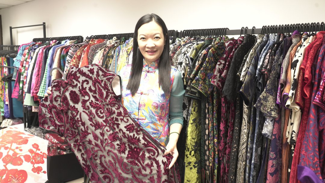 這件玫紅色長衫正是來自香港中式長衫設計師余嫿之手。2008年北京奧運會香港馬術比賽制服、香港龍舟總會制服、香港海關首位女關長禮服的設計,皆出自余嫿的手筆。從熱愛美術到成為華服設計師,余嫿以針線為筆,以布料為卷,用二十餘載的堅守,編織着「華服夢」,致力於推廣華服文化。憑藉不斷努力,她先後獲評「全港時尚專業女性獎」「香港十大傑出青年」等獎項。