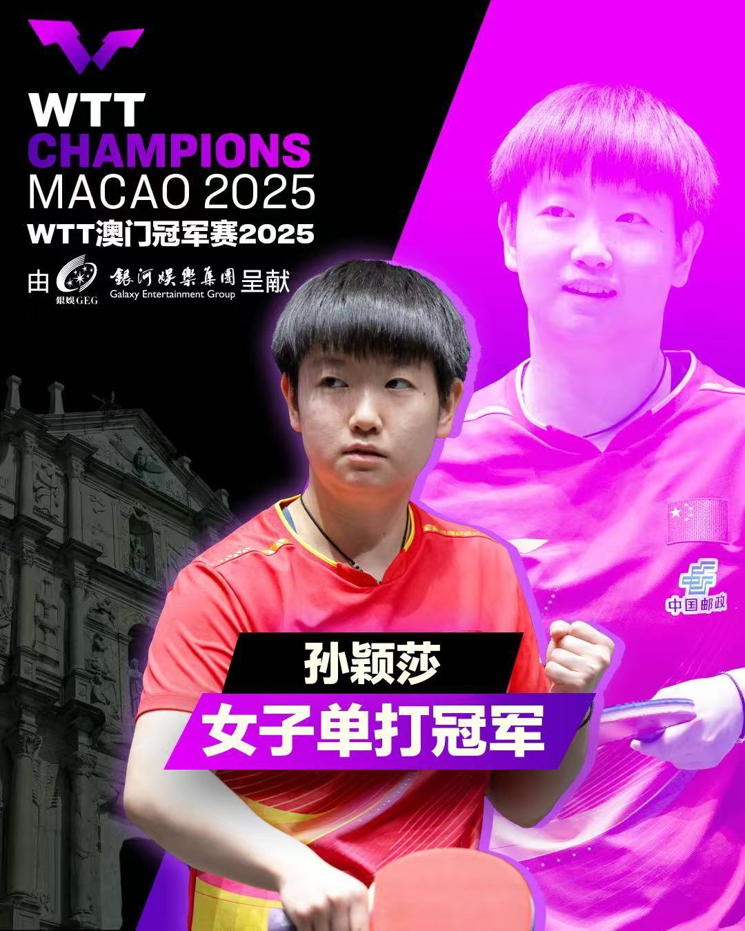孙颖莎夺得WTT澳门冠军赛女单冠军